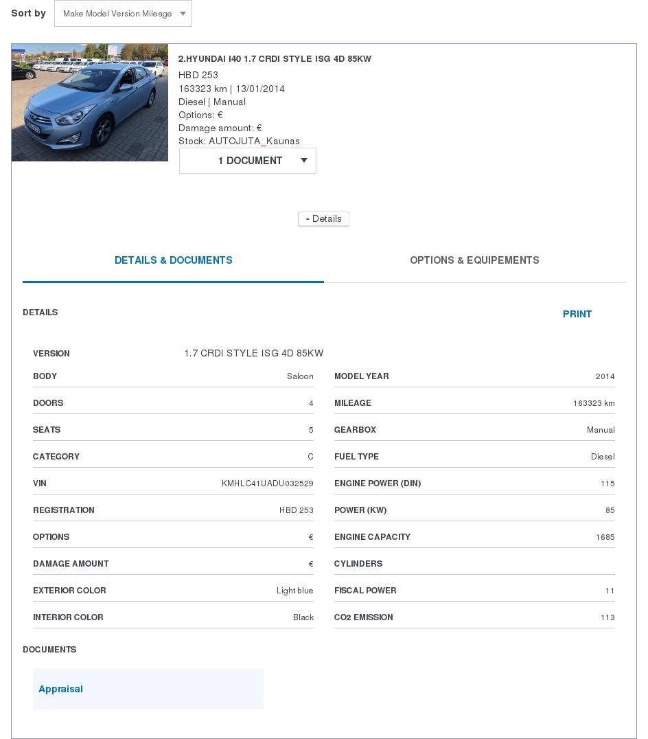| KMHLC81AACU007339 | Hyundai | i40 | 24.2.2026 | 218 362 | Polsko | 28.3.2026 | 203 768 | - 14 594 | ![]() |