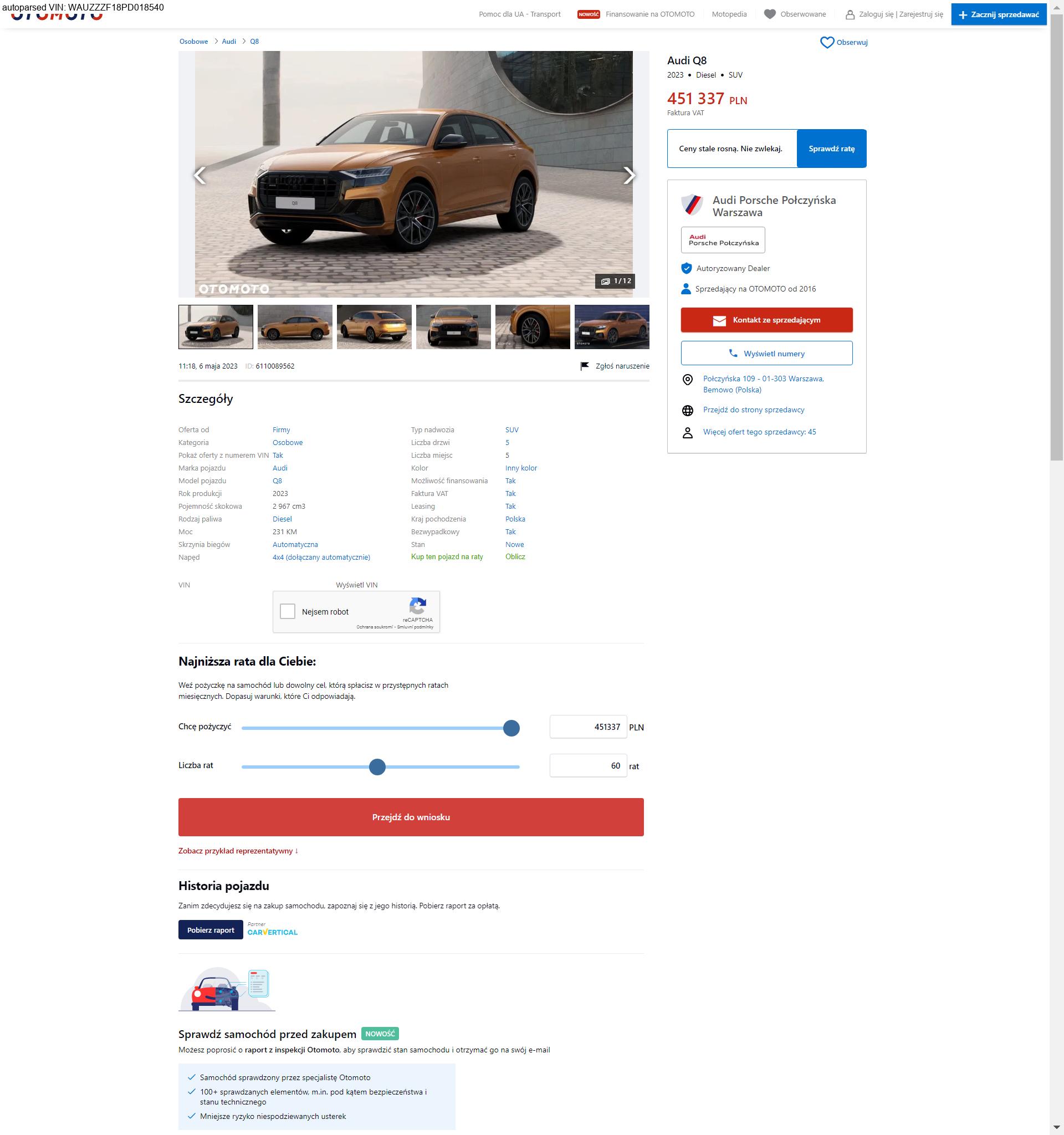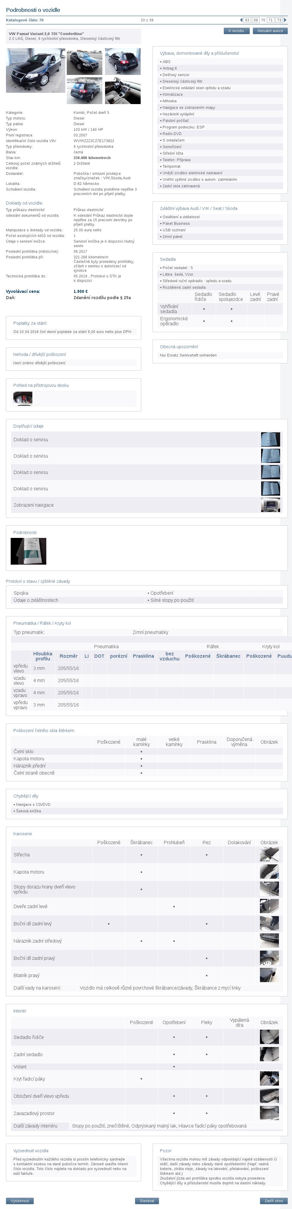 | WAUEACF58RA039768 | Audi | A5 | 14.3.2026 | 45 061 | Polsko | 5.4.2026 | 28 000 | - 17 061 | ![]() |